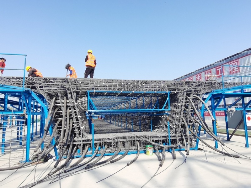廊坊凱博建設(shè)機(jī)械科技有限公司(凱博科技)依托北京建筑機(jī)械化研究院有限公司在鋼筋加工機(jī)械領(lǐng)域多年的技術(shù)積累,針對(duì)高鐵箱梁預(yù)制施工各環(huán)節(jié)對(duì)鋼筋制品的差異化需求,潛心研究、精心攻關(guān),按照中鐵十一局集團(tuán)橋梁有限公司項(xiàng)目需求,助力新建首個(gè)滬渝蓉項(xiàng)目武宜段WYZQ-5標(biāo)荊門(mén)鐘祥制梁場(chǎng)。其中鋼筋加工數(shù)字化項(xiàng)目,包含GQX-300數(shù)控鋼筋剪切生產(chǎn)線、GWXL2-32D數(shù)控彎曲中心、GWXL4-25D數(shù)控彎曲中心、GQX-GWX-25數(shù)控鋼筋剪切彎曲一體生產(chǎn)線、GGJ12數(shù)控鋼筋彎箍機(jī)、GT5-12調(diào)直機(jī)(32米)、GTWQ12調(diào)直五機(jī)頭、HJDW12焊接定位網(wǎng)等多種設(shè)備,可定制化生產(chǎn)高鐵箱梁預(yù)制施工各環(huán)節(jié)多種鋼筋制品。